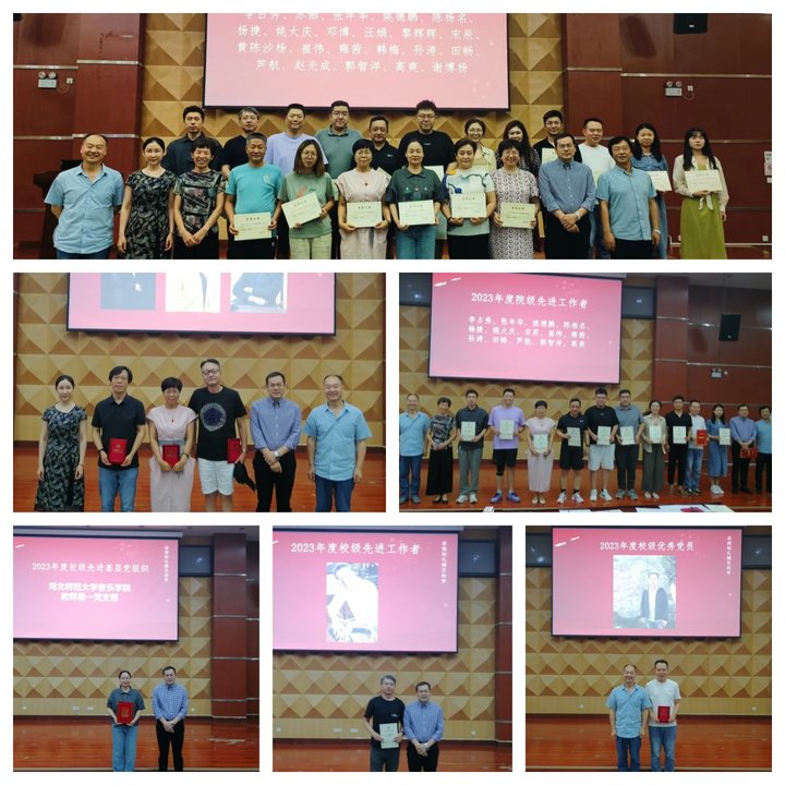 会上,六合彩app下载 领导班子成员依次为2023年度先进基层党组织,校级和院级优秀党员以及校级、院级先进工作者,师德师风考核优秀教师颁发获奖证书并合影留念。